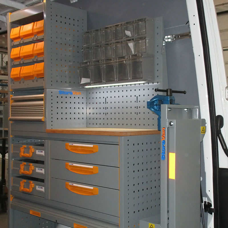 Store Van vyrábí montážní a dílenské vestavby specifické pro užitkové vozy Mercedes-Benz. Každé užitkové vozidlo je možné vybavit dle přání zákazníka. Dílenské vestavby nabízejí širokou škálu provedení od regálových až po výsuvné systémy. Mimořádně obsáhlá nabídka příslušenství zaručuje perfektní uspořádání pracovních nástrojů. Opláštění na ochranu nákladového prostoru, držáky nákladu a žebříku, systém pro bezpečné nakládání na střechu dodávky a četné police pro vybavení podle specifických profesionálních potřeb.