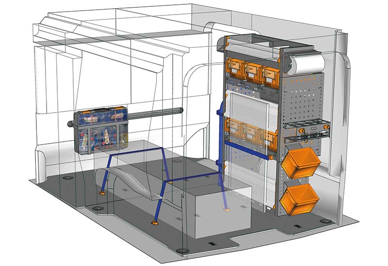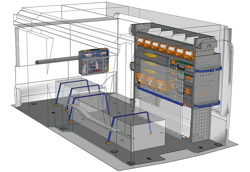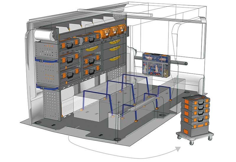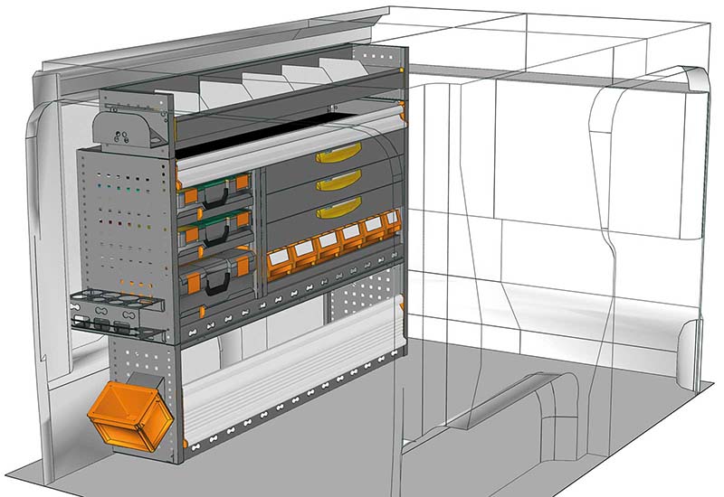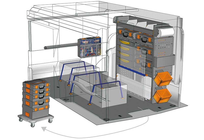 Store Van nabízí vybavení vhodné pro zvýšení funkčnosti a efektivity dodávky. Jsme si plně vědomi faktu, že pro profesionálně odvedenou práci jsou nezbytné pracovní nástroje, vybavení a náhradní díly. Proto naše auto vestavby, které spojují to nejlepší z výroby, vám pomohou při výkonu vaší práce. Store Van také nabízí patentovaný střešní držák žebříku, který umožňuje bezpečné nakládání na střechu vozidla. Nastavená výška komponentů může být přizpůsobena požadavkům zákazníka. Vezměte si svou mobilní pracovnu s sebou a sledujte cestu svého pracovního úspěchu.
