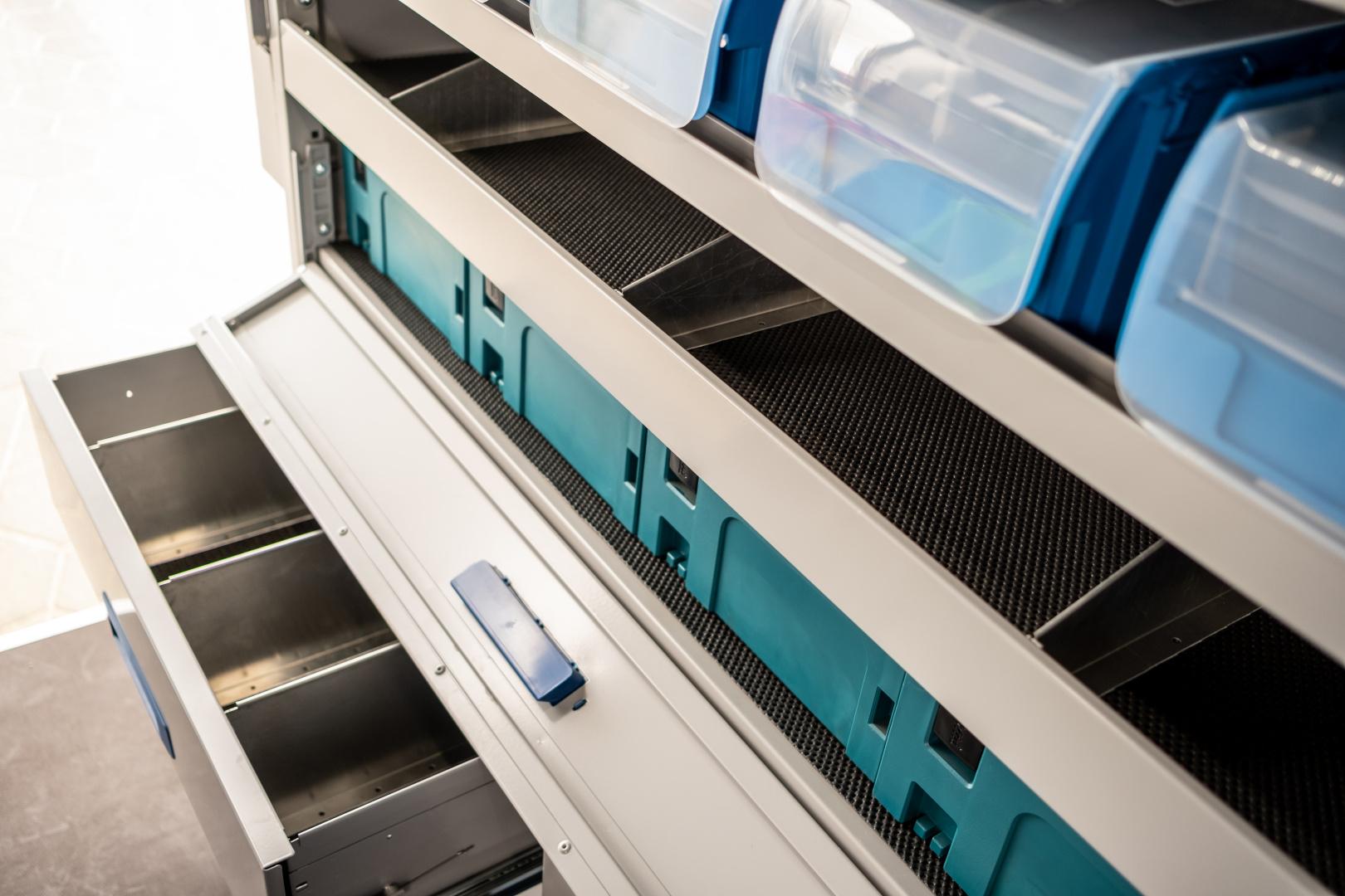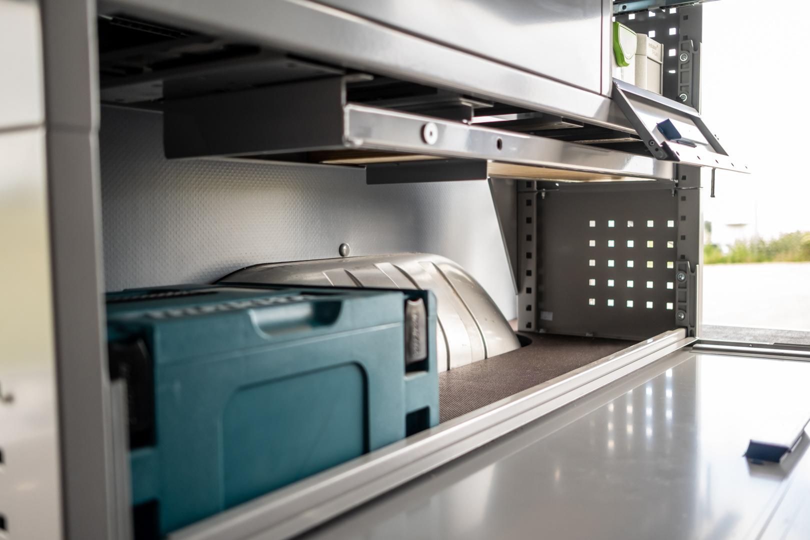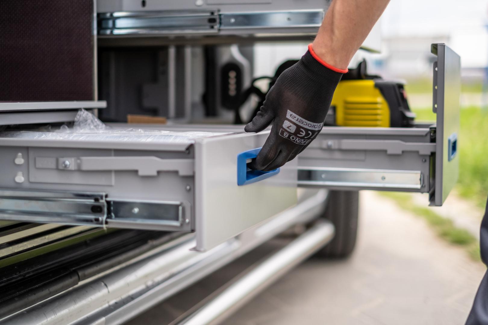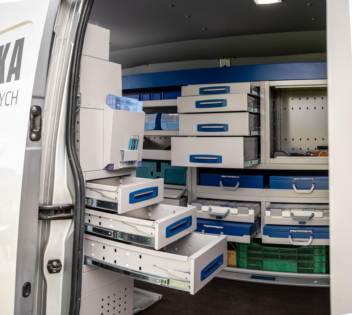 Naše vestavby nejsou jen standardní police a zásuvky. Jsou to inteligentní moduly, které lze libovolně kombinovat a doplňovat podle druhu práce a typu vozidla.