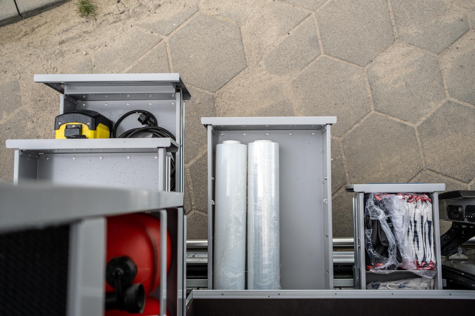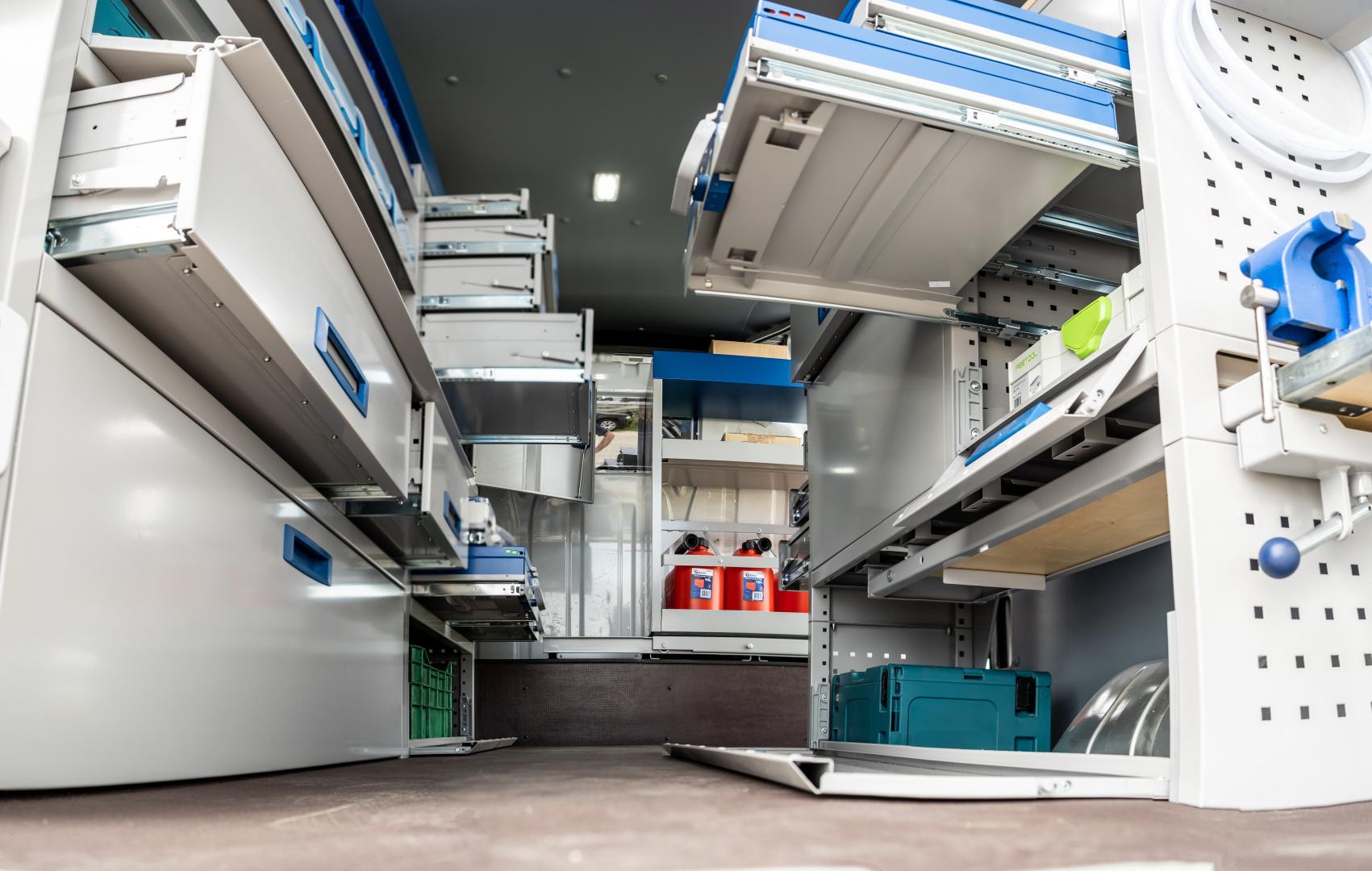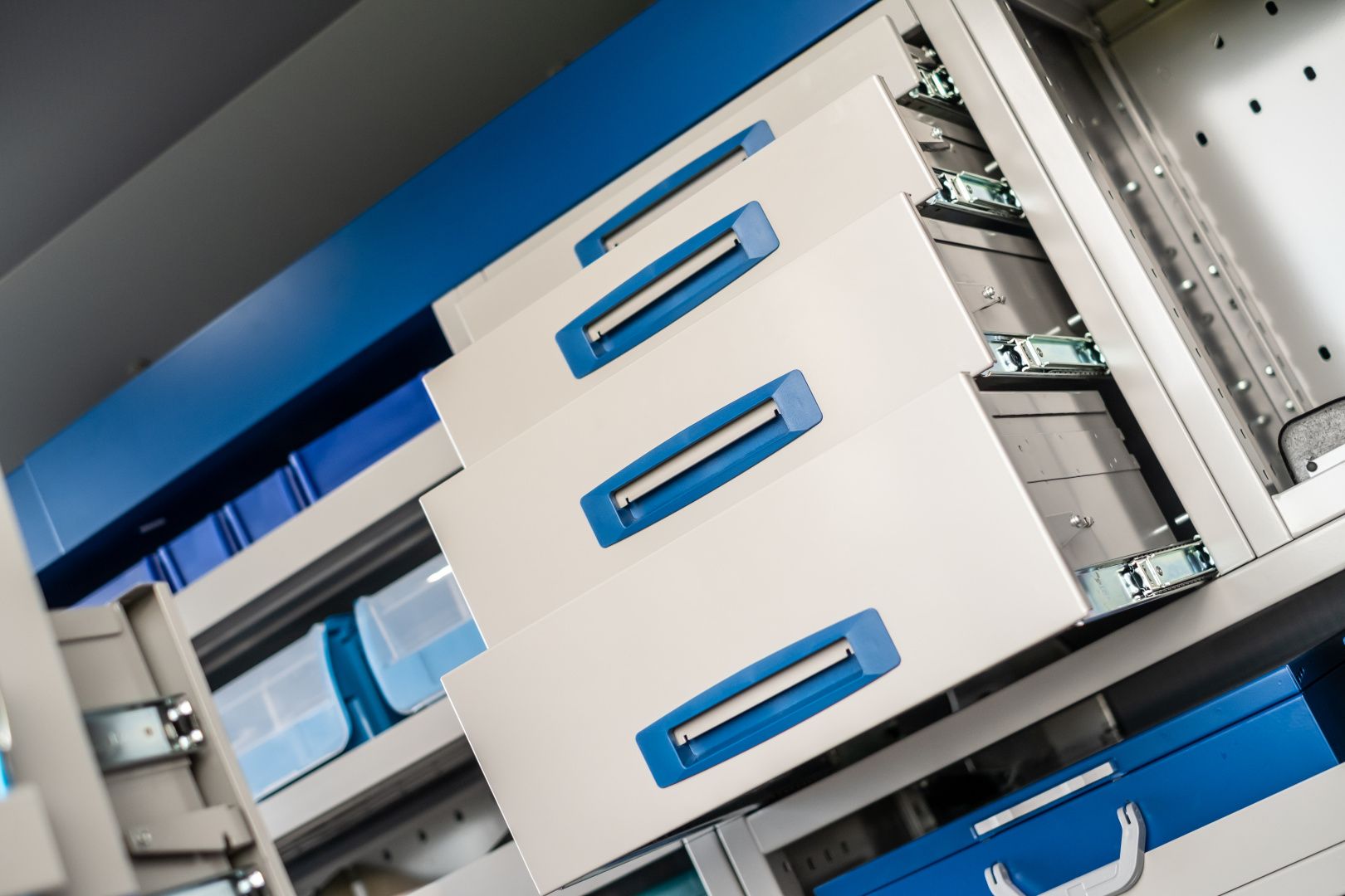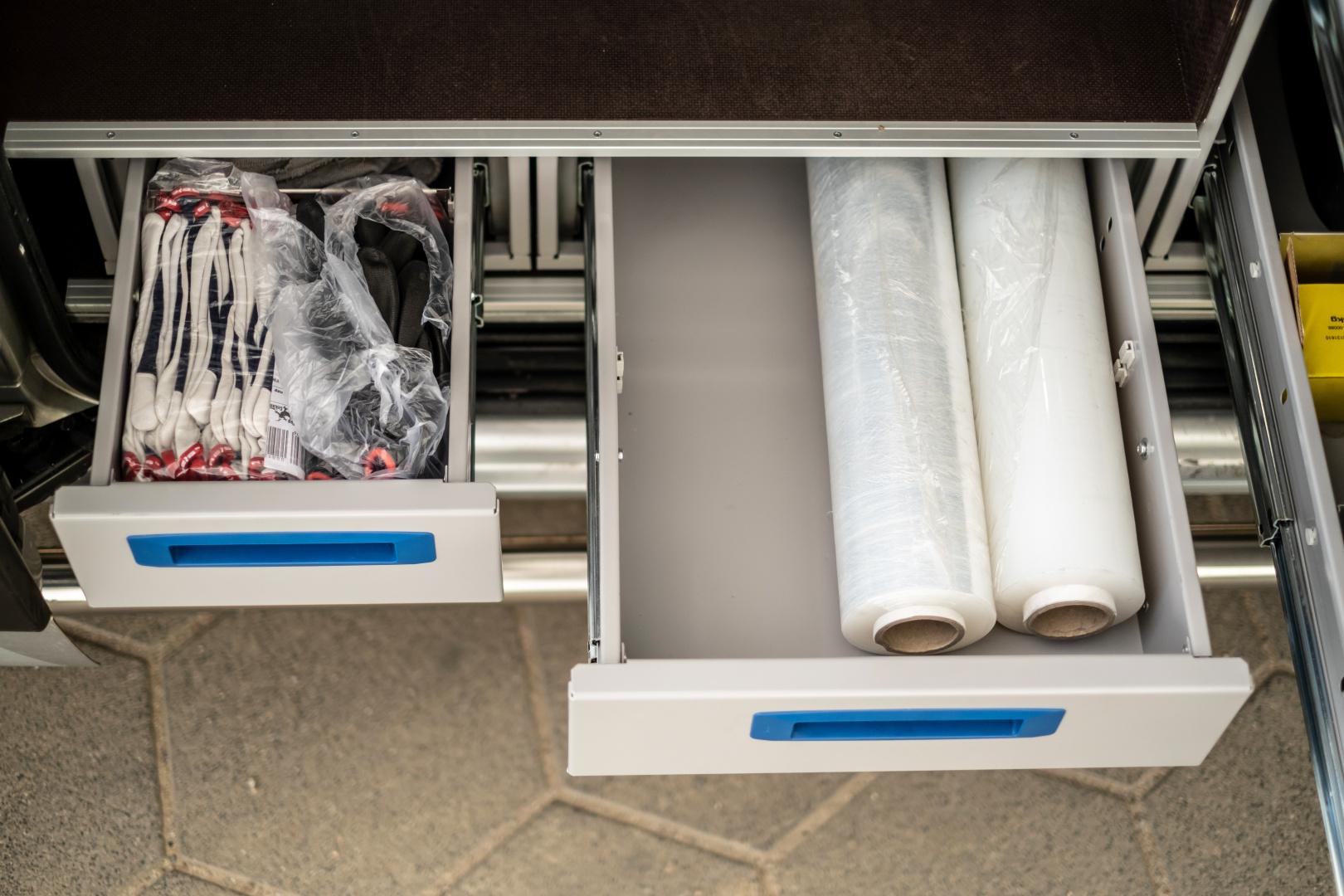 Naše vestavby nejsou jen standardní police a zásuvky. Jsou to inteligentní moduly, které lze libovolně kombinovat a doplňovat podle druhu práce a typu vozidla.